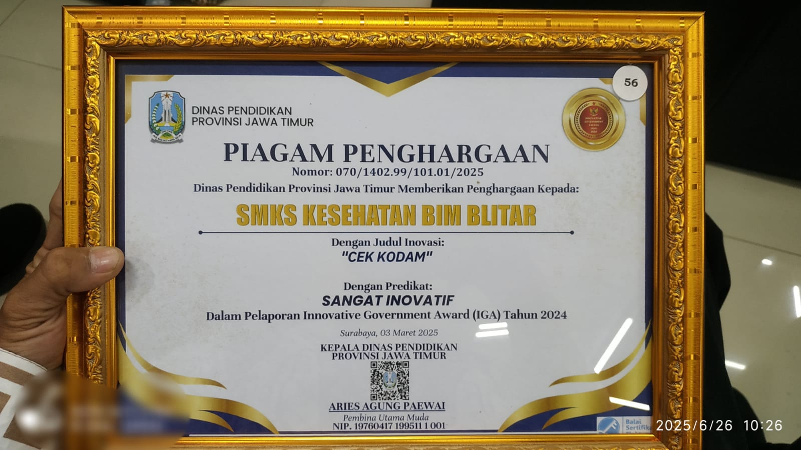 Pada hari yang bersejarah, Sekolah Menengah Kejuruan (SMK) KESEHATAN BAKTI INDONESIA MEDIKA BLITAR menerima piagam penghargaan yang luar biasa atas inovasi yang telah diciptakan oleh para guru. Piagam penghargaan ini diberikan oleh Dinas Pendidikan Provinsi Jawa Timur setempat sebagai bentuk apresiasi terhadap inovasi teknologi yang diberi nama “Cek Kodam“. Inovasi ini hadir sebagai solusi praktis […]